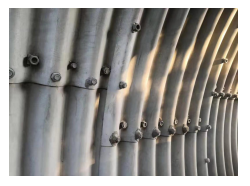 (1)、分片拼裝式波紋鋼結構,每片波紋鋼板面積只有2~3平方米,單節長度沿縱向長度只有1~1.5米,并且要求錯縫拼裝,接縫多。